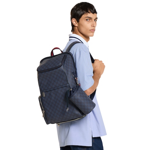 Une toile GG Supreme plus douce agrémente les pièces de la collection Gucci Tennis et se décline dans une nouvelle teinte de bleu foncé. Confectionné dans une variante de la matière, ce sac à dos est agrémenté d’une bande Web bleu et rouge.