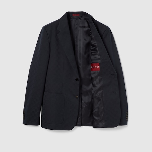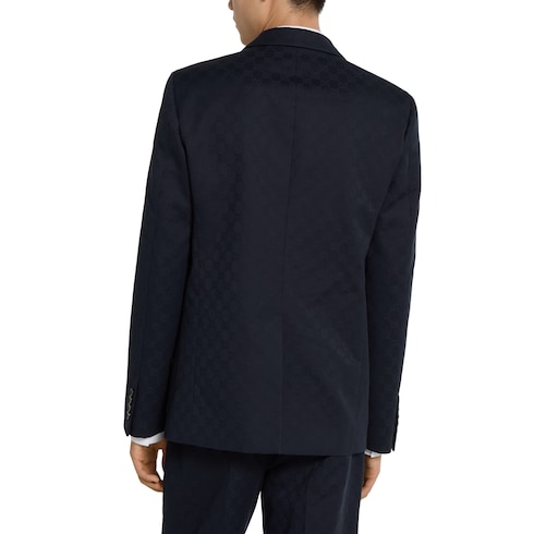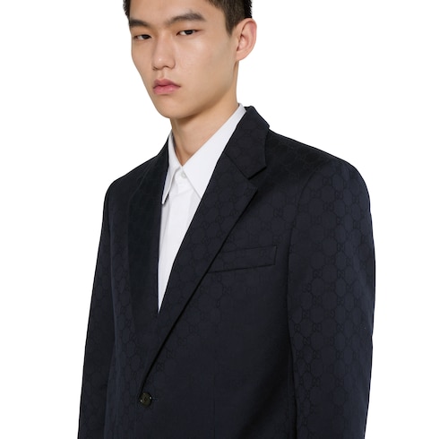 Pour la collection Pre-Fall 2025, une approche décontractée des tenues habillées voit l’arrivée de nouvelles silhouettes et coupes. Des éléments signature sont associés à des détails raffinés. Cette veste est confectionnée en gabardine de coton à jacquard GG bleu foncé.