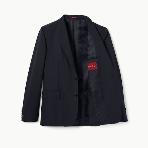 Pour la collection Pre-Fall 2025, une approche décontractée des tenues habillées voit l’arrivée de nouvelles silhouettes et coupes. Des éléments signature sont associés à des détails raffinés. Ce costume est confectionné en laine noire. Ce costume est confectionné en laine bleu foncé.