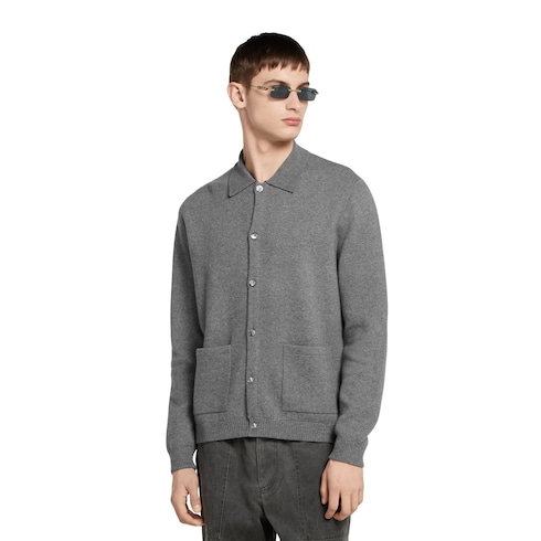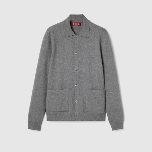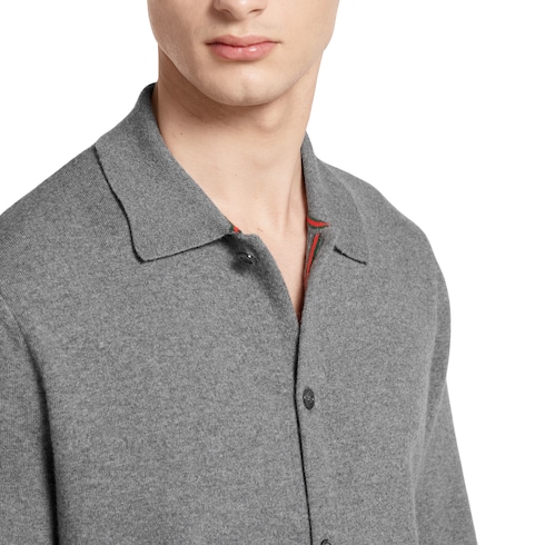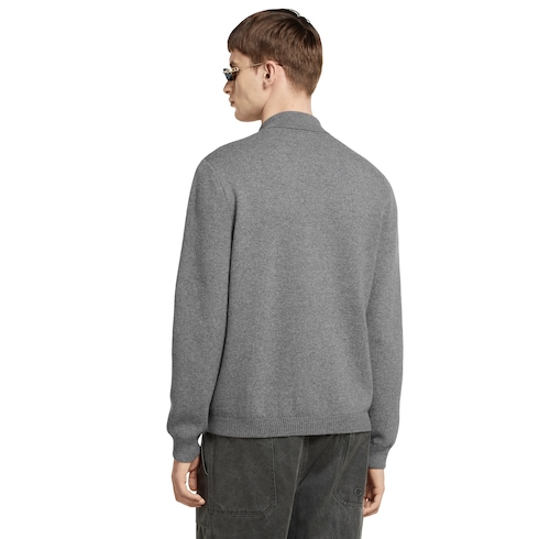 La collection Pre-Fall 2025 associe des textures douces à des détails sophistiqués pour donner une touche raffinée à la garde-robe d’hiver. Confectionné en maille de laine et cachemire grise, ce cardigan est orné d’un détail bande Web discret le long de la patte de boutonnage intérieure.