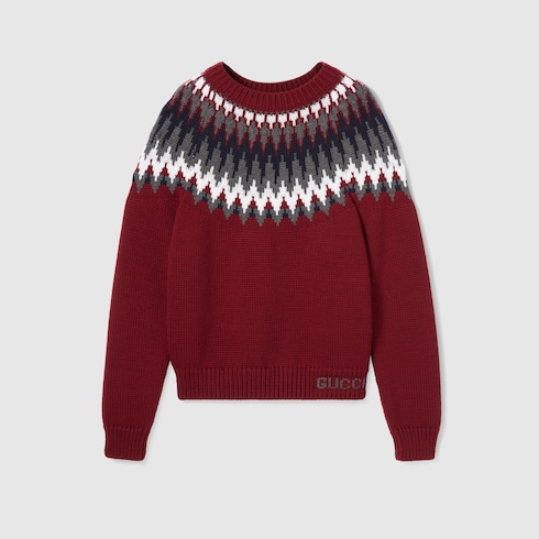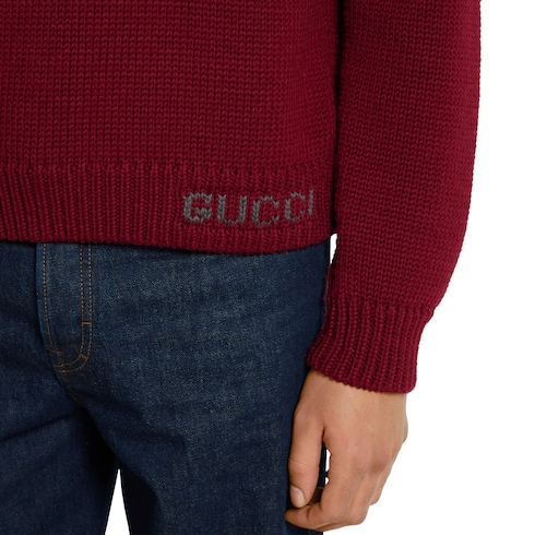 - Pull en maille de laine épaisse rouge Gucci Rosso Ancora