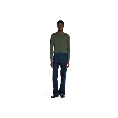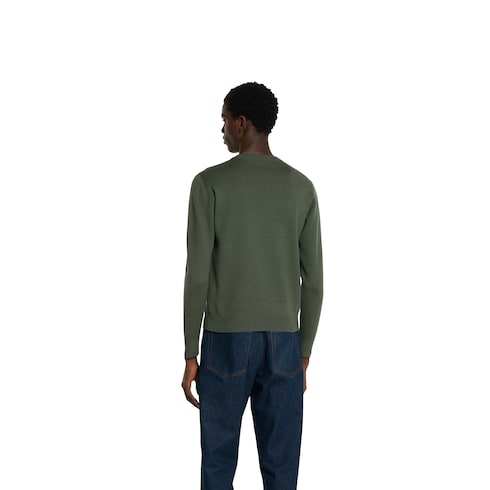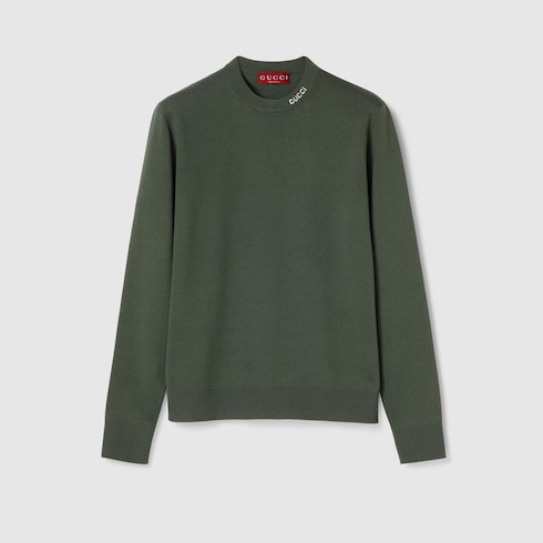 La collection Pre-Fall 2025 met en avant des silhouettes incontournables avec des détails emblématiques, pour la journée comme la soirée. Ce pull en maille de soie et coton vert forêt se caractérise par un motif Gucci en intarsia.