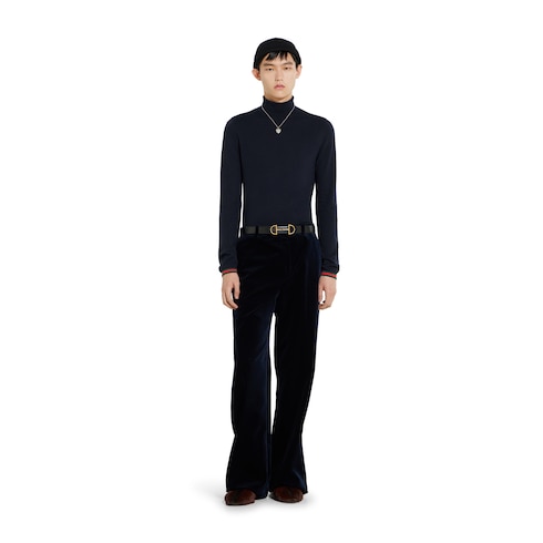 Pour la collection Automne-Hiver 2025, ce col roulé à manches longues présente des lignes intemporelles. Des finitions côtelées viennent sublimer les bords, tandis qu’un détail bande Web discret rend hommage à l’héritage de la Maison.