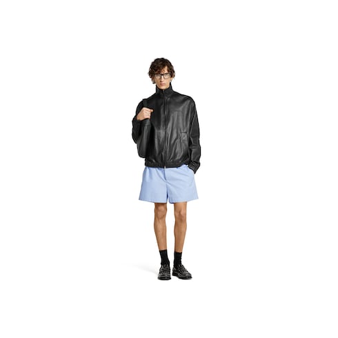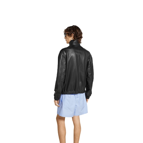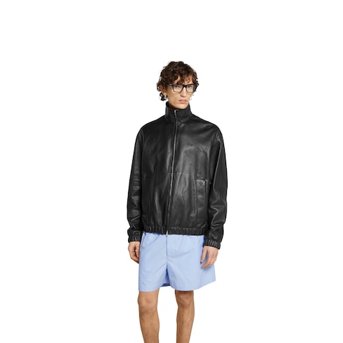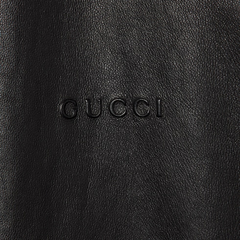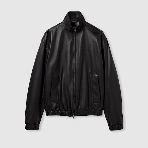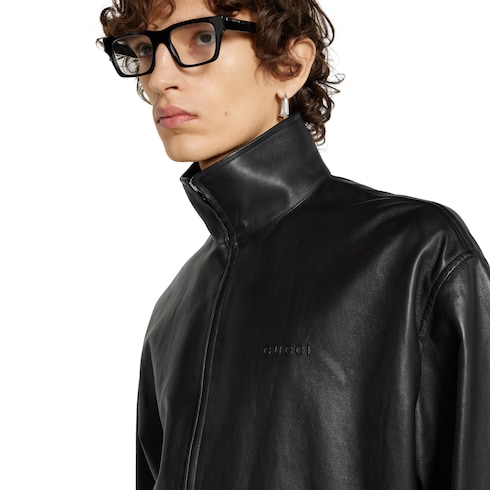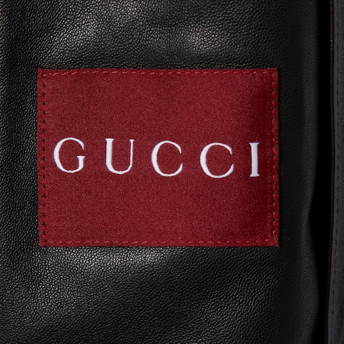 Pour la collection Pre-Fall 2025, les essentiels de la garde-robe urbaine pour l’extérieur, tels que les blousons aviateur et les vestes en cuir, associent raffinement et matières somptueuses avec une petite touche d’élégance. Confectionné en cuir contrecollé avec du jersey coloris noir, ce blouson aviateur est rehaussé d’un logo Gucci en relief.