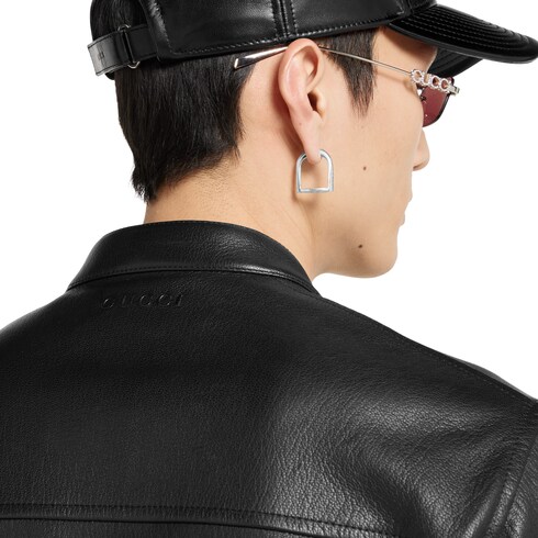Pour la collection Pre-Fall 2025, les essentiels de la garde-robe urbaine pour l’extérieur, tels que les blousons aviateur et les vestes en cuir, associent raffinement et matières somptueuses avec une petite touche d’élégance. Confectionnée dans un cuir doux noir, cette veste zippée arbore un logo embossé et des boutons métallisés Gucci.