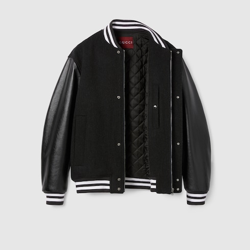 Pour la collection Pre-Fall 2025, les essentiels de la garde-robe urbaine pour l’extérieur, tels que les blousons aviateur et les vestes en cuir, associent raffinement et matières somptueuses avec une petite touche d’élégance. Confectionné en laine batavia coloris noir, ce blouson aviateur est doté de manches en cuir et de finitions en maille côtelée.