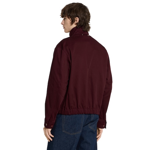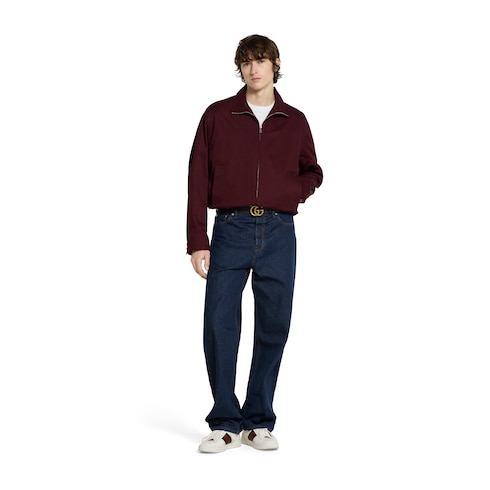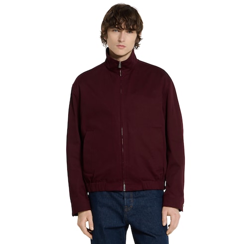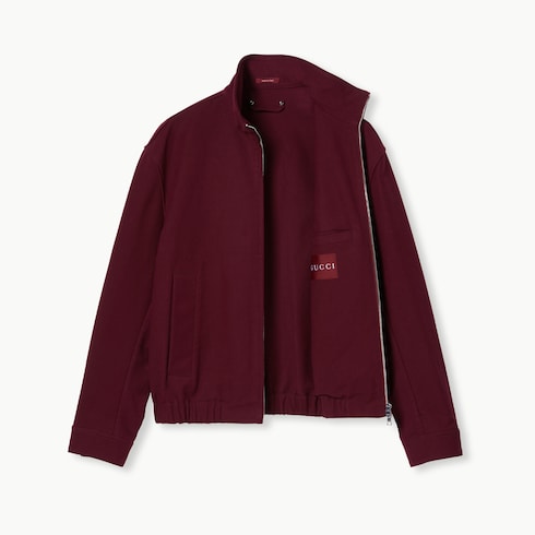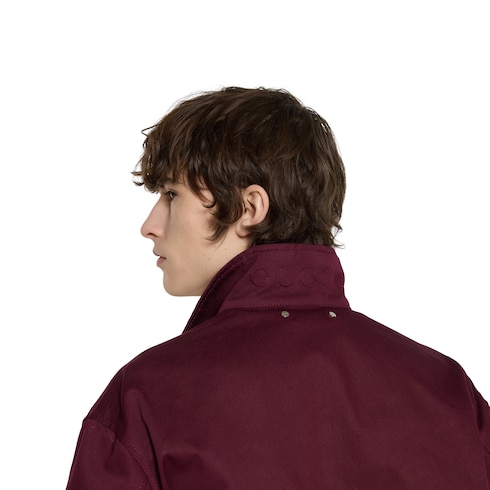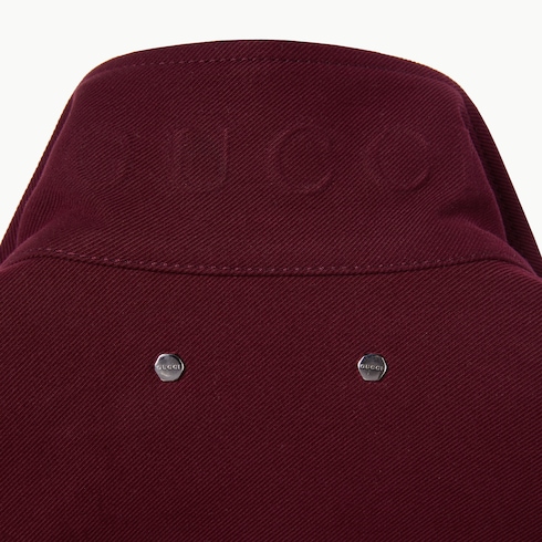 La collection Pre-Fall 2025 met en avant des silhouettes incontournables avec des détails emblématiques, pour la journée comme la soirée. Confectionnée en gabardine de coton bordeaux, cette veste se caractérise par un logo Gucci en relief sur le col.