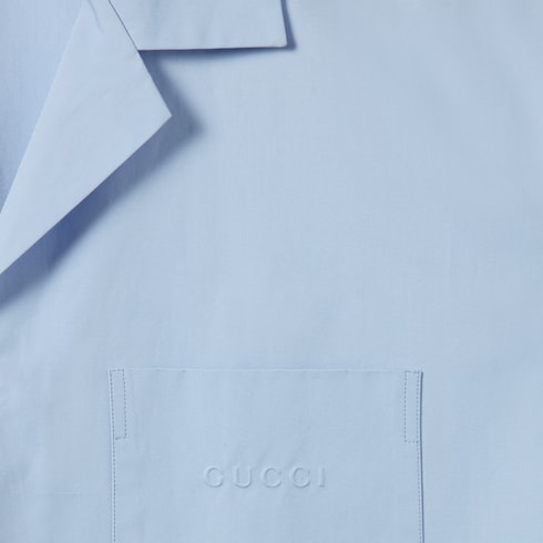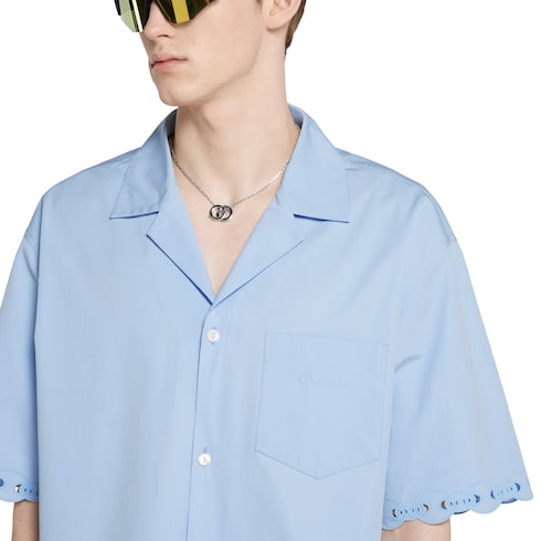La collection Pre-Fall 2025 apporte une touche de raffinement à votre garde-robe de tous les jours avec un mélange de textures, de motifs et de couleurs. Ici, la broderie Marina Chain Gucci orne une chemise en popeline de coton, réinterprétant les pièces estivales.