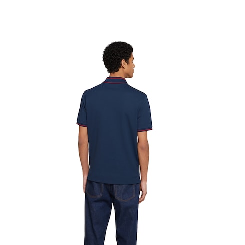 La Maison continue d’explorer le lien qui l’unit à l’univers du tennis depuis les années 70. Des pièces emblématiques mettent en valeur des détails intemporels, tels que la bande Web, ainsi que des matières innovantes. Ce polo en piqué de coton bleu marine est rehaussé d’un détail jacquard Gucci sur le col.