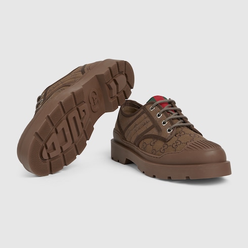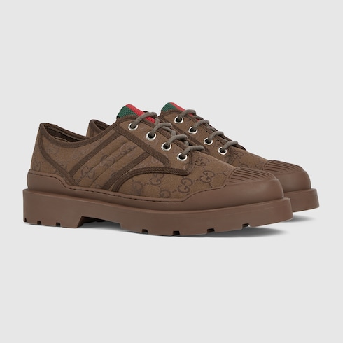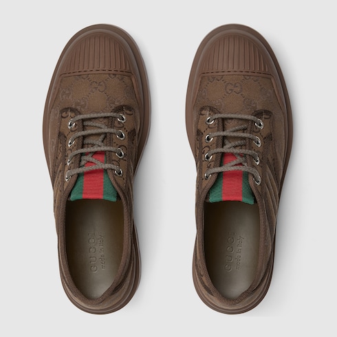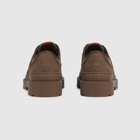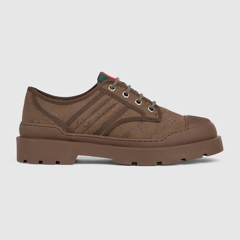 Pour la collection Automne-Hiver 2025, cette paire de chaussures à lacets pour homme confectionnée en toile GG est caractérisée par le détail bande Web vert et rouge. Le motif signature rappelle les origines de la Maison, mettant en valeur le savoir-faire à l’œuvre dans ce modèle épuré.