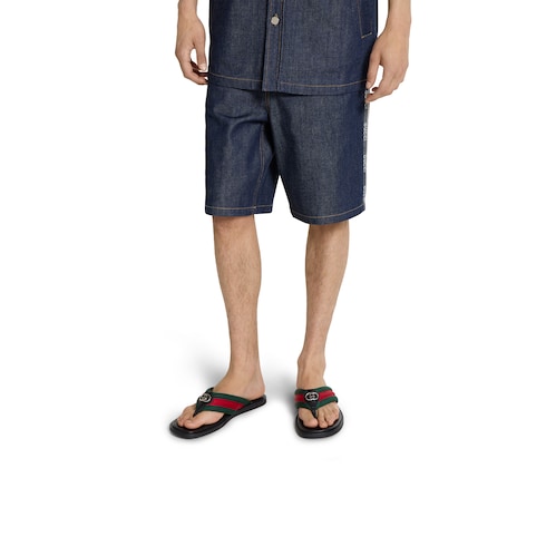 Inspirée du détail bande Web emblématique, cette paire de nu-pieds est confectionnée en nylon vert et rouge. Un détail GG enlacés argenté vient rehausser le modèle.