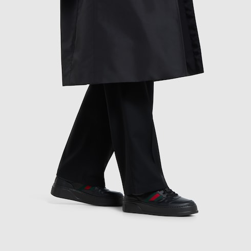 Pour la collection Automne-Hiver 2025, avec sa silhouette épaisse, cette paire de baskets joue avec les formes, les couleurs et les matières, arborant une allure rétro. Dotées d’une semelle en caoutchouc bien définie, ces chaussures en cuir sont sublimées par une bande Web qui signe le modèle.