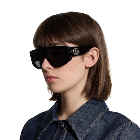 La collection de lunettes Pre-Fall 2025 associe avec succès les silhouettes tant convoitées des décennies passées à un effet logo contemporain. Cette monture en acétate noir arbore un détail Double G.