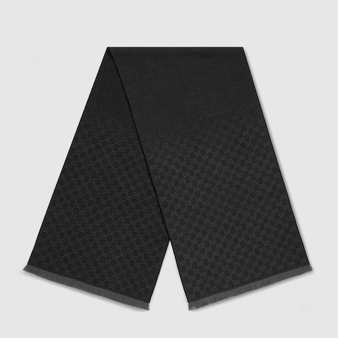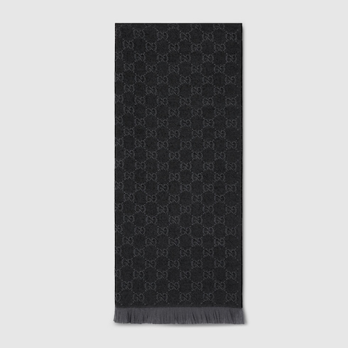 Pour la collection Automne-Hiver 2025, le motif GG emblématique se décline dans une palette de tons doux. Elle est ici présentée sur cette écharpe en laine, agrémentée de finitions à franges.