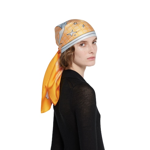 Orné d’une œuvre de l’artiste Wallie (Walter Petrone), dont le récit animé mêle réflexion personnelle et graphismes dynamiques, ce carré explore un motif marin de Gucci dans le cadre du projet 90 x 90.