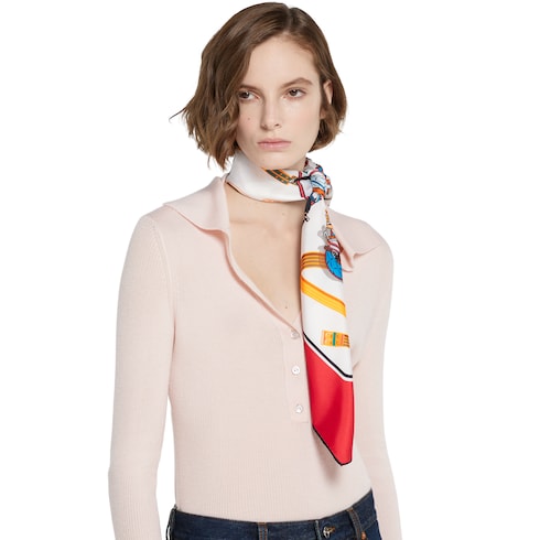 Orné d’une œuvre de l’artiste Wallie (Walter Petrone), dont le récit animé mêle réflexion personnelle et graphismes dynamiques, ce carré explore un motif marin de Gucci dans le cadre du projet 90 x 90.