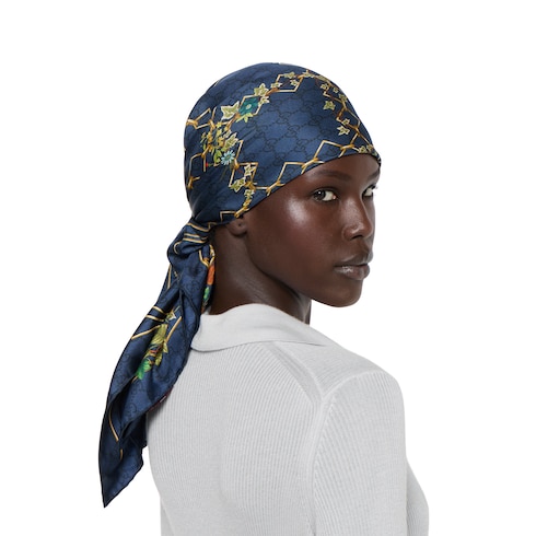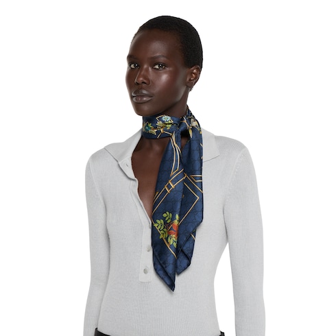 L’imprimé Flora historique est réinventé pour la collection Cruise 2025. Les motifs floraux s’affichent sur une sélection d’accessoires souples et en soie déclinés dans des teintes pastel, pour un esprit romantique. Confectionné en soie, ce carré est orné d’un imprimé fleuri Gucci GG sur toute la surface.