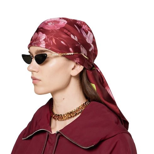 Présenté dans le cadre de la collection Pre-Fall 2025, ce carré en twill de soie est orné d’un imprimé bandana fleuri sur toute la surface.