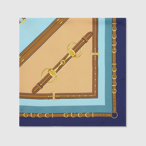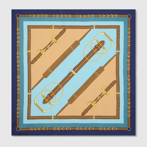 Pour la collection Automne-Hiver 2025, la Maison célèbre son héritage, notamment à travers ce carré de soie orné d’un imprimé équestre Gucci sur toute la surface.