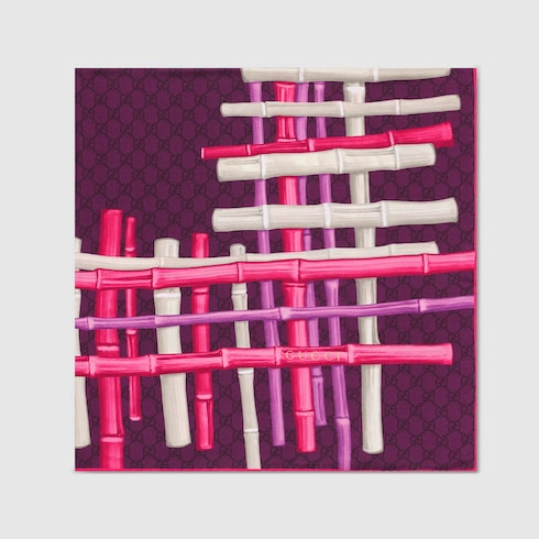 Les accessoires en soie pour femme de la collection Cruise 2026 réinventent des motifs issus des archives avec des imprimés innovants. Confectionné en twill de soie, ce carré révèle un imprimé GG bambou sur toute la surface.