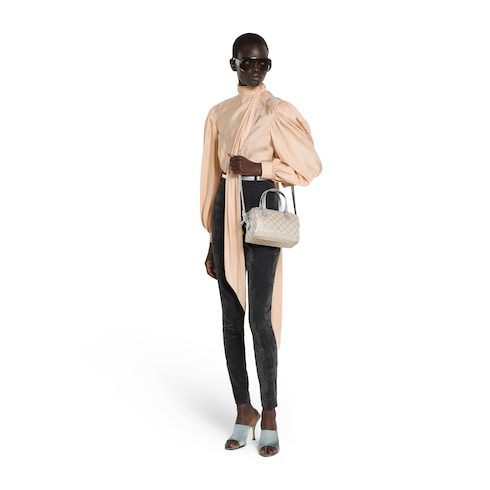 La collection GG Emblem réinterprète l’histoire de la Maison, marquée par l’élégance et le savoir-faire, en introduisant des modèles métallisés qui réinventent le motif GG emblématique, avec des finitions en cuir métallisé.