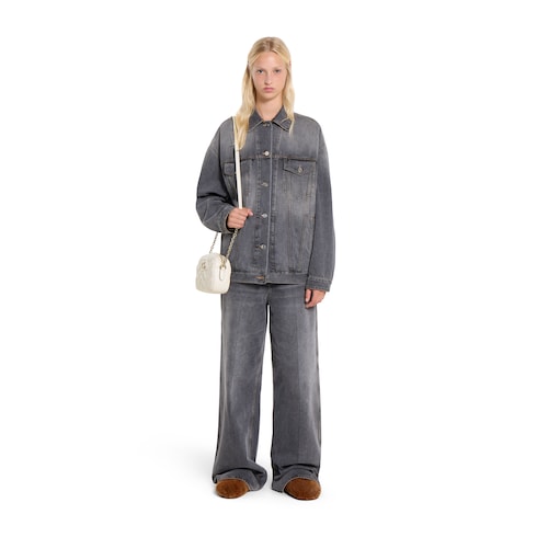 La gamme GG Marmont emblématique de la Maison se caractérise par le détail Double G signature, une bandoulière chaîne à facettes et des silhouettes contemporaines. Le nouveau sac pour appareil photo met en valeur un savoir-faire raffiné avec un cuir exceptionnellement souple et des finitions délicates dans une finition couleur or clair.