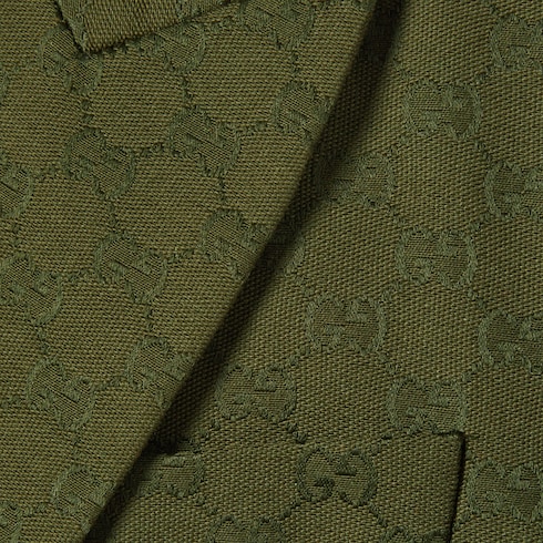 Le vert, fil conducteur du récit chromatique de la collection Pre-Fall 2025, s’exprime avec éclat à travers des textures variées, des détails logo et une palette de nuances, comme en témoignent les tenues présentées lors du défilé. Cette veste à double boutonnage s’affiche dans la teinte signature avec un motif GG sur toute la surface.