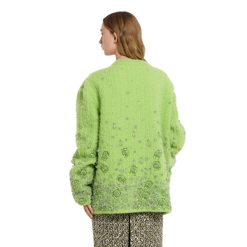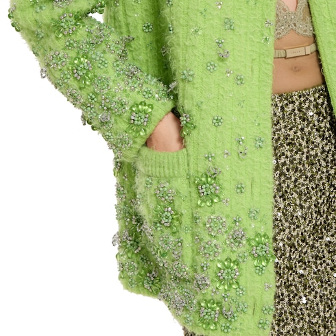 Pour la collection Automne-Hiver 2025, des textures douces et des détails élégants rehaussent les silhouettes traditionnelles des vêtements d’extérieur. Cette veste en laine est agrémentée d’un col ras du cou, d’une fermeture boutonnée sur le devant et d’une broderie florale avec perles et sequins le long de l’ourlet et sur les manches. Des poches plaquées complètent le modèle.