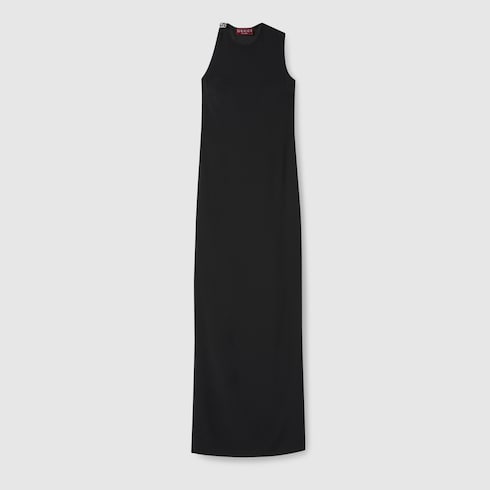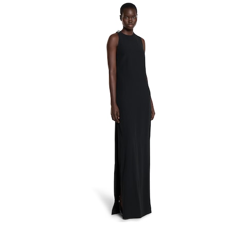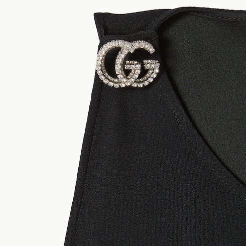 Des tons clairs aux teintes profondes, les pièces élégantes confectionnées dans des matériaux raffinés mettent en valeur les silhouettes sensuelles, sublimant la collection Pre-Fall 2025. Cette robe en viscose et satin présente une silhouette épurée avec un détail Double G en cristaux sur l’épaule.