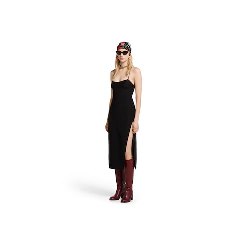 Une sélection de pièces de la collection Pre-Fall 2025 au ton monochrome et rehaussées de détails subtils, tels que des broderies ou des logos, parachève n’importe quel look, en journée comme en soirée. Cette élégante robe en soie et viscose est ornée d’un détail Mors avec cristaux au centre à l’arrière.