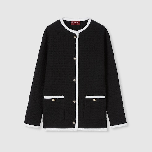 Les manteaux, vestes et robes associent élégance discrète et détails raffinés dans la collection Pre-Fall 2025. Ce cardigan en tweed de laine doux à l’esprit chic est rehaussé de finitions brodées en sequins et de boutons Double G dorés.