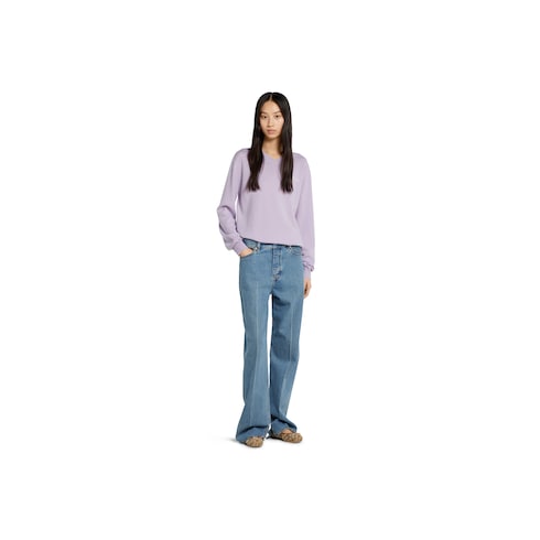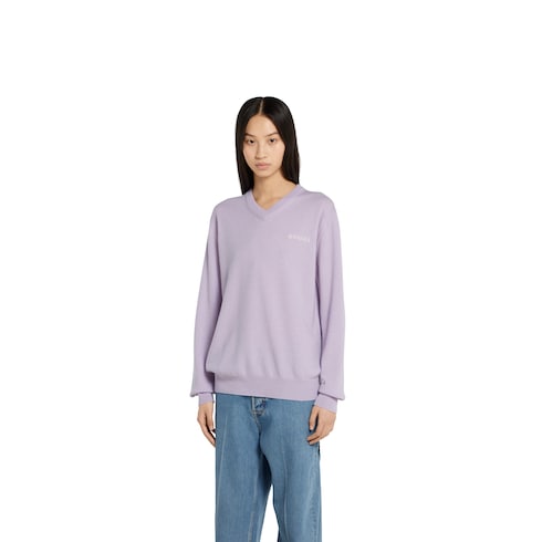 Dans la collection Pre-Fall 2025, des hauts et des robes colorés donnent aux pièces de prêt-à-porter une touche d’audace pour la garde-robe de mi-saison. Décliné dans une teinte délicate, ce pull en cachemire est agrémenté d’un détail Gucci en intarsia.