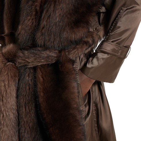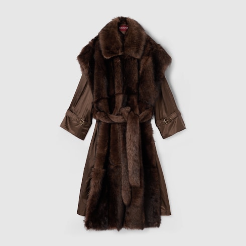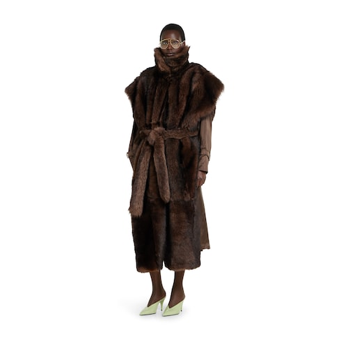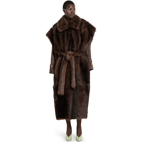 Manteau en shearling à poils longs avec ceinture