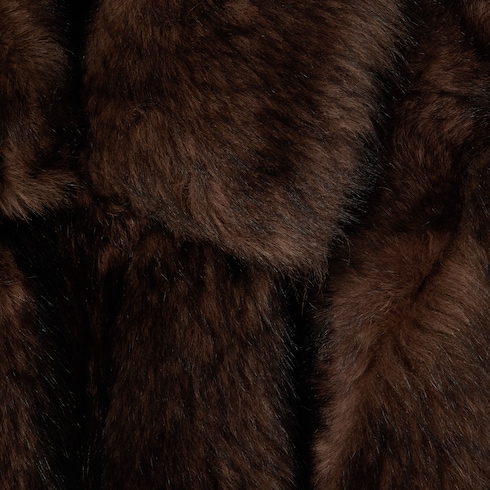 - Shearling doux à poils longs marron foncé et noir avec technique de passepoil pour créer une texture naturelle