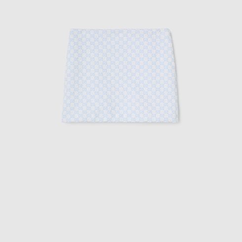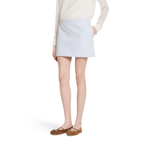 Les sélections de la collection Pre-Fall 2025 mettent en avant des silhouettes incontournables avec des détails emblématiques, pour le jour comme la soirée. Cette mini-jupe en coton bouclé GG rend hommage au monogramme immédiatement reconnaissable de Guccio Gucci, le fondateur de la Maison.