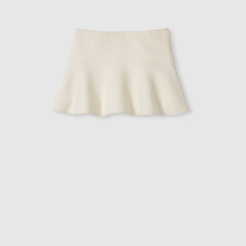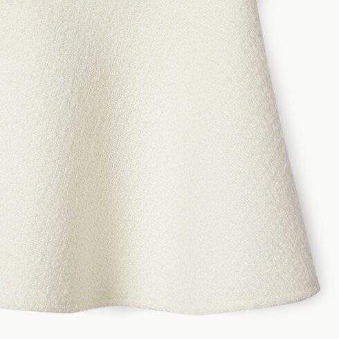Les manteaux, vestes et chemises associent élégance discrète et détails raffinés dans la collection Pre-Fall 2025. Cette minijupe fluide est confectionnée en laine bouclée à l’esprit chic.