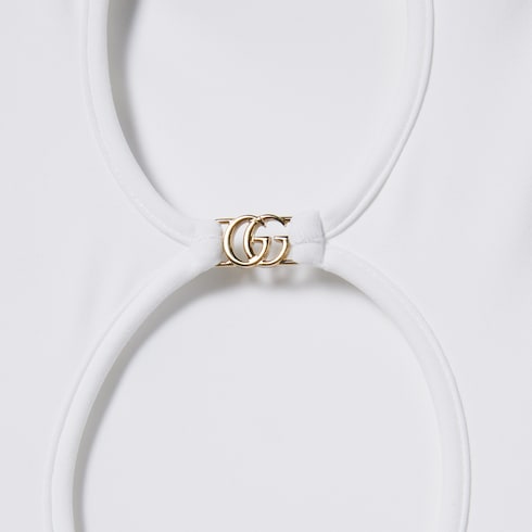 Les codes emblématiques de la Maison et les motifs raffinés sont réinterprétés de façon contemporaine pour la collection Pre-Fall 2025. Ce maillot de bain en jersey stretch étincelant présente une forme ajourée résolument contemporaine sur les côtés, ainsi qu’un détail Double G au dos.