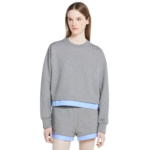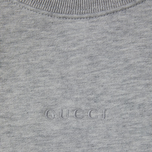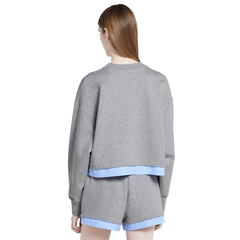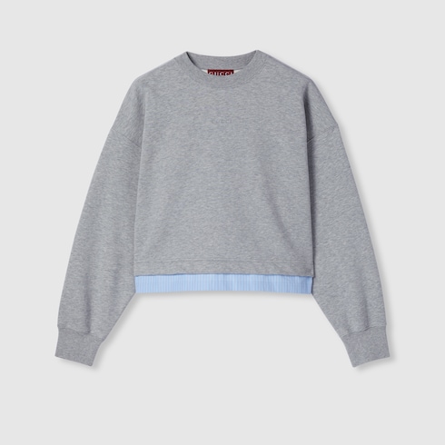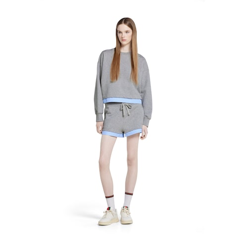 Parfaites pour le bord de mer, les créations d’inspiration marine rehaussent les silhouettes décontractées de rayures, de matières légères et de motifs signature au sein de la collection Pre-Fall 2025. Ce sweat-shirt en jersey est rehaussé de finitions en coton à rayures bleues et d’une broderie Gucci.