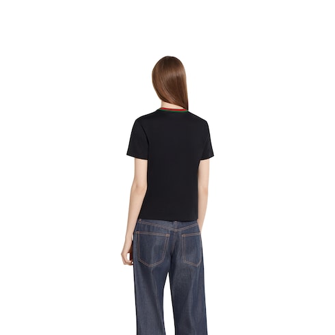Les codes de la Maison ne cessent d’évoluer pour la nouvelle saison sur des t-shirts décontractés et des pièces en jersey. Ce t-shirt à manches courtes est confectionné dans un jersey de coton léger et orné d’un empiècement logo Gucci et d’une finition à bande Web.
