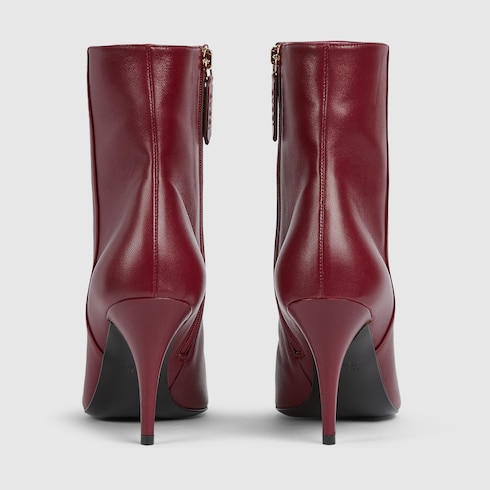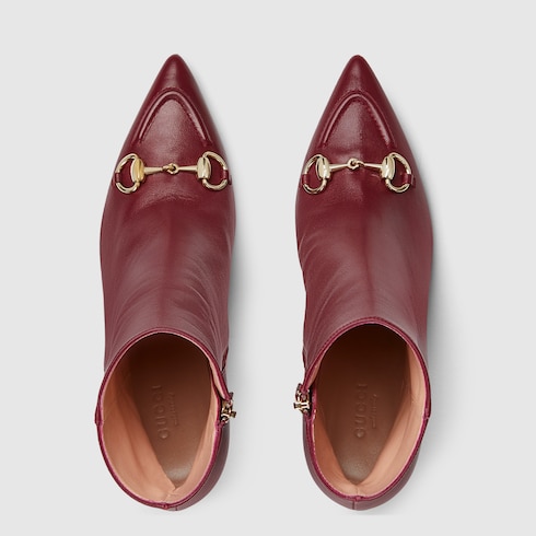Confectionnées en cuir souple et lisse, ces bottines pour femme sont rehaussées d’un détail Mors doré clair, un code historique de Gucci. La silhouette épurée incarne une élégance naturelle.