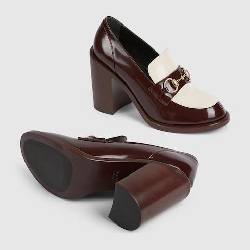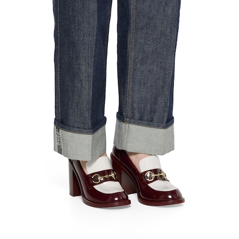 Rendant hommage à l’héritage équestre de la marque, ces mocassins à talon moyen pour femme confectionnés dans un cuir verni lisse et brillant se caractérisent par un détail Mors doré clair.