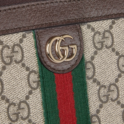 La collection Ophidia évoque l’héritage de la Maison avec la bande Web signature et l’emblème Double G en finition doré clair.