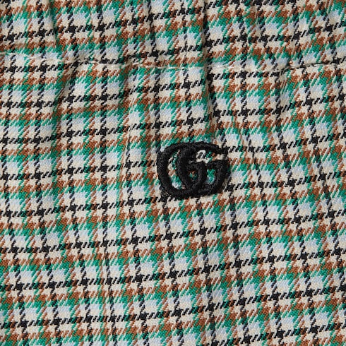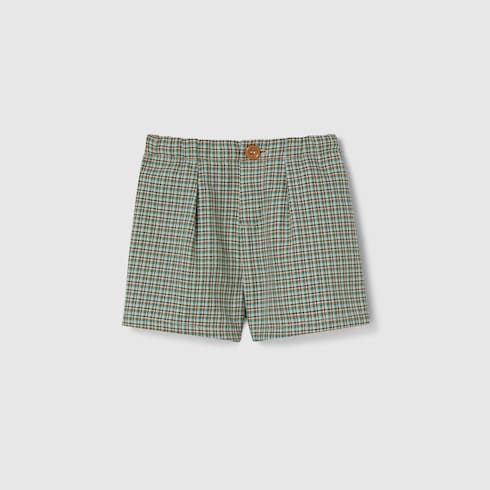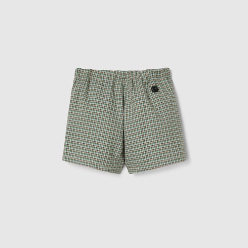 Dalle stampe ai dettagli ricamati, il nome e il logo della Maison sono proposti in diverse varianti su una selezione di accessori e capi ready-to-wear per la collezione Pre-Fall 2025. Questi shorts per neonati sono realizzati in cotone a micro quadri e impreziositi da un ricamo Doppia G.
