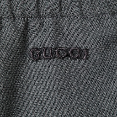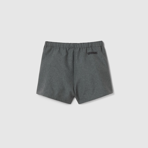 Dalle stampe ai dettagli ricamati, il nome e il logo della Maison sono proposti in diverse varianti su una selezione di accessori e capi ready-to-wear per la collezione Pre-Fall 2025. Questi shorts per neonati sono realizzati in lana e impreziositi dal ricamo Gucci. La vita elasticata assicura il massimo comfort.