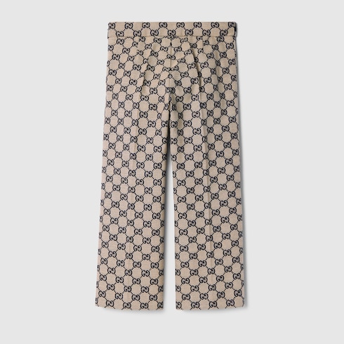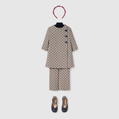 Da ricami delicati a stampe all over, gli emblematici motivi della Maison continuano ad arricchire la collezione bambini Pre-Fall 2025. Questi pantaloni per bambini sono realizzati in tessuto GG, che richiama l'inconfondibile monogramma della Maison. Un dettaglio Morsetto completa la silhouette.