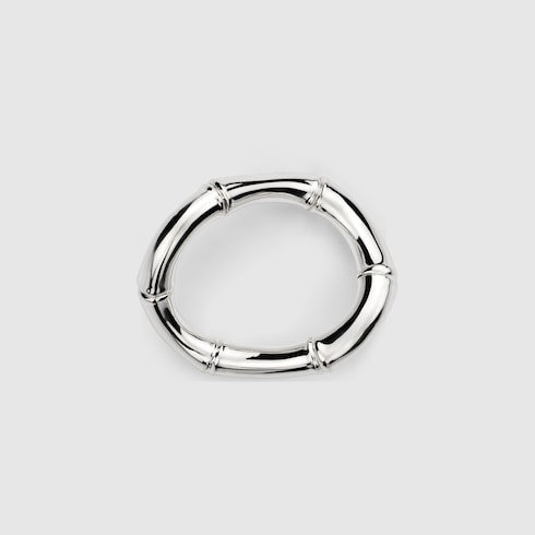 La collezione Décor della Maison continua a reinterpretare i motivi emblematici (come i dettagli GG, Web, bambù, Morsetto e le ispirazioni equestri) con materiali pregiati, una lavorazione artigianale elaborata e tonalità fresche. Questo portatovagliolo in acciaio inox è realizzato con la forma dell'inconfondibile motivo bambù e impreziosito dall'incisione del logo Gucci.