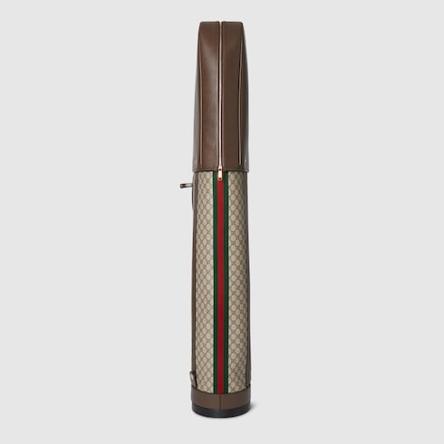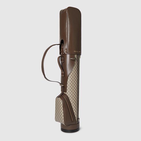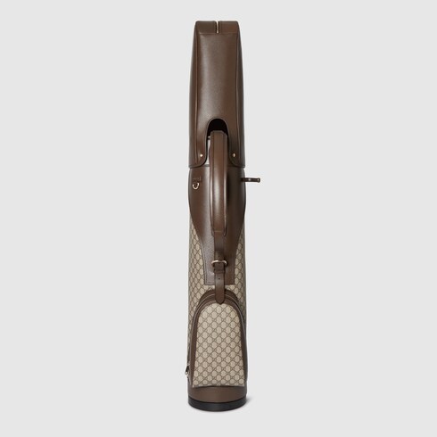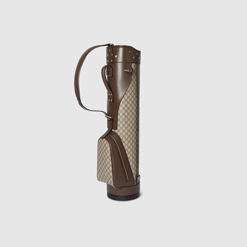 Gucci apre la sua collezione lifestyle al mondo del golf. Questa borsa da golf è caratterizzata dal tessuto rivestito con monogramma GG, dal nastro Web e dalle finiture in pelle. Può essere portata a mano o a spalla grazie alla tracolla imbottita.