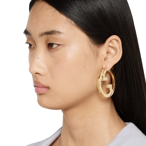 L'Incrocio GG Tondo, che definisce la linea Gucci Blondie, ritorna con nuove versioni per la collezione Pre-Fall 2025. Il motivo cut-out forma questo paio di maxi orecchini a cerchio.