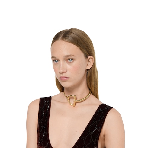 Parte della collezione Autunno Inverno 2025, ispirata agli emblematici design della Maison, questa collana è definita dall'esclusivo dettaglio mezzo Morsetto. Qui, l'accessorio è realizzato in ottone color oro giallo.
