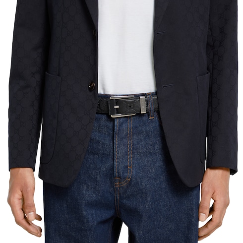 Cintura con motivo GG in rilievo e fibbia squadrata